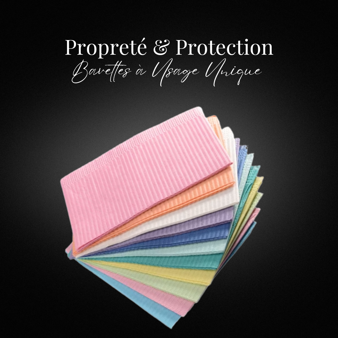 Bavettes Plastifiées Jetables – Propreté & Protection | Rouge VernisProtégez votre espace comme une pro.Paquet de bavettes plastifiées jetables, parfaites pour les techniciennes en pose d’ongles qui veulent garder leur poste de travail propre et impeccable.